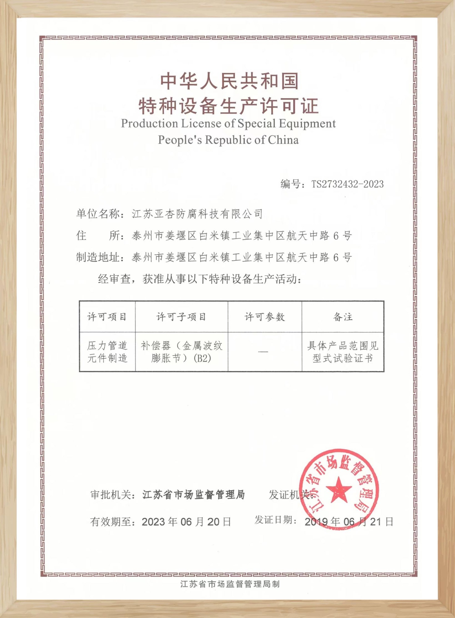 特種設備生產許可證
